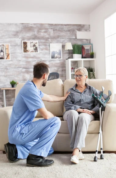პროფესიონალი ექთანი ჩამოდის პაციენტთან